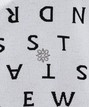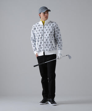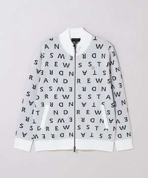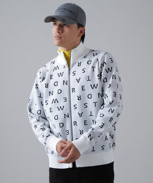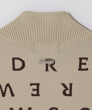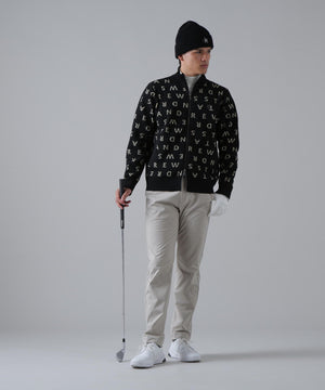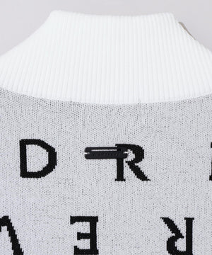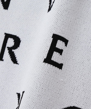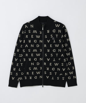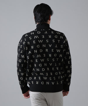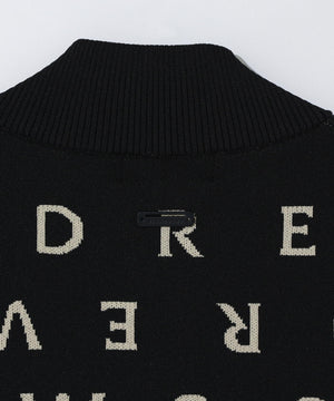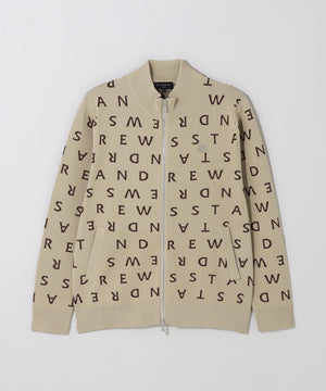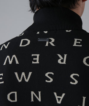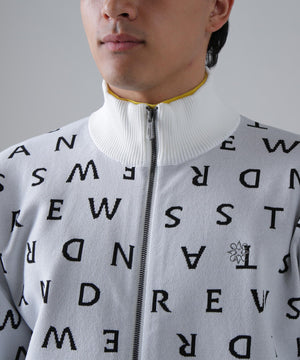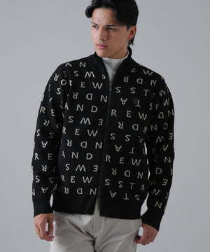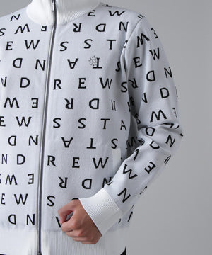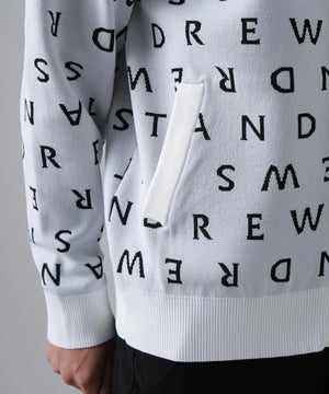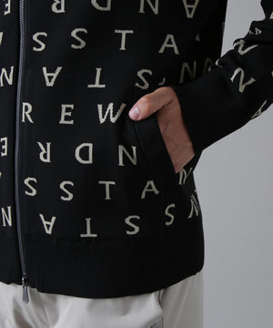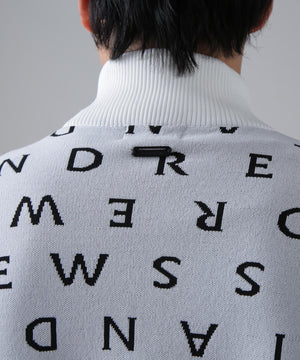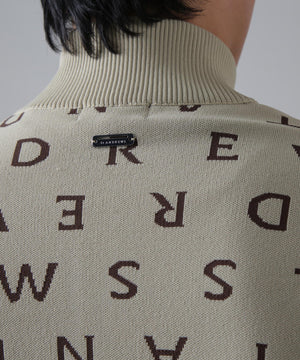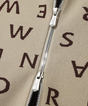 ロゴのレイアウトに変化をつけて遊び心を与えた、14Gロゴジャガードフルジップニット。