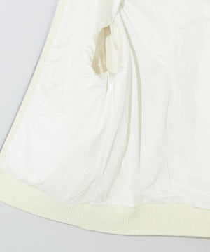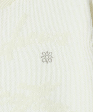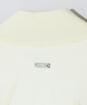 異素材の糸でランダムロゴをジャガード 表現した、裏地付きニットブルゾンです。
