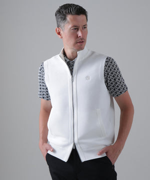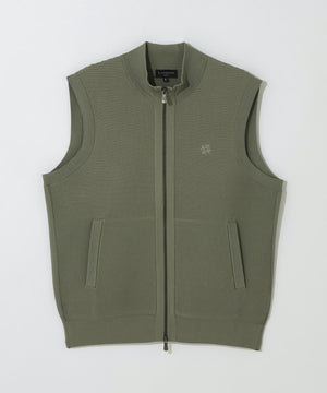 フロントポケットとケルトの刺繍がさりげないアクセントになった、14Gフルジップアップニットベスト。