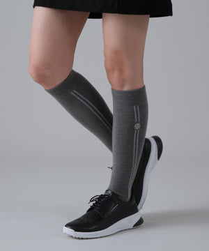特殊な素材を練り込んで保温性を高めた、ラインハイソックス。