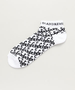 遊び心のあるSAロゴで総柄をデザインした、SAロゴアンクルソックス。