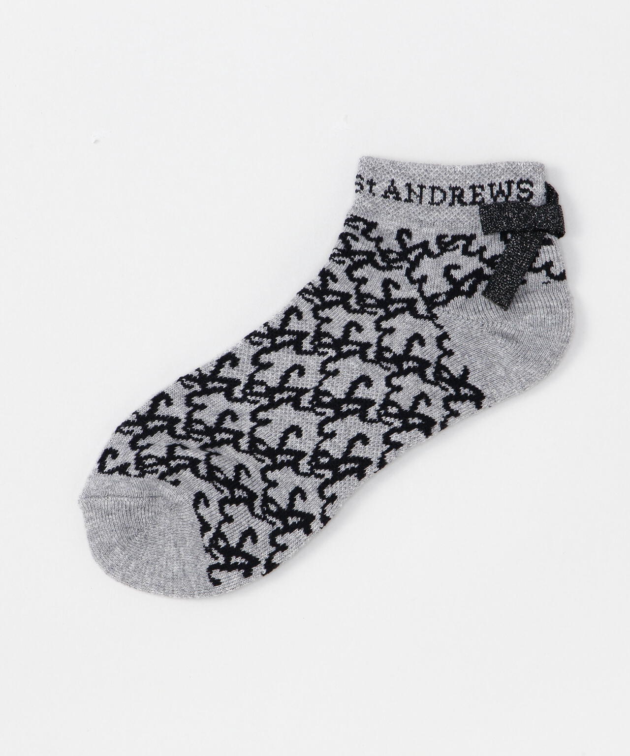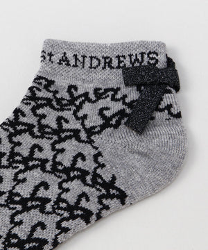ラメのリボンでエレガントな印象をプラスした、SAロゴリボンアンクルソックス。
