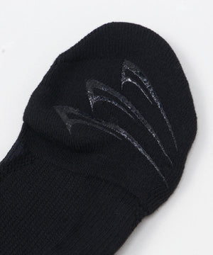 足底サポート、つま先立体設計、小趾球フィット、母趾球フィット、アーチキープサポート、ボールヒールを配置した履き心地の良いショート丈のソックスです。