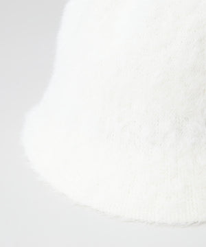 少し毛足のあるモヘアの柔らかな肌触りの素材を使用して冬の寒さから頭部を保護してくれる、モヘアハット。