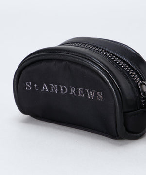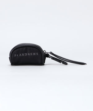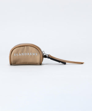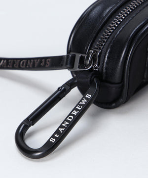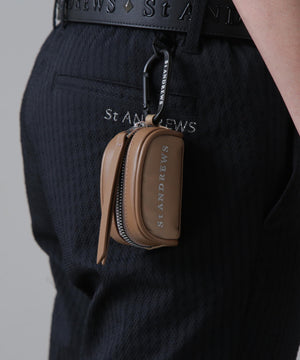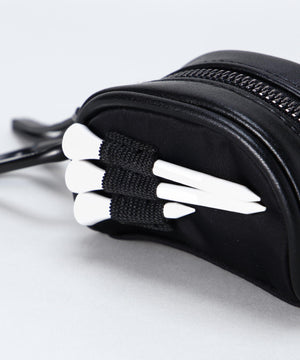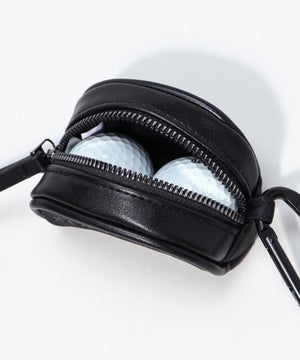 ファスナー開閉口で使用しやすく、予備のボールの携帯に便利なカラビナと、TEE刺しが付いた、ゴルフボールを2個収納できるボールケースです。
