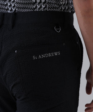 ランダムな凹凸で立体感のあるおしゃれな雰囲気を演出できる、特徴的な凹凸によるデザイン性が魅力的なパンツです。