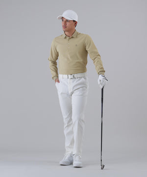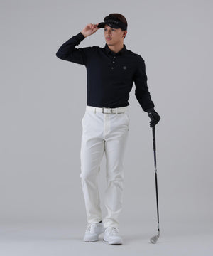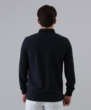 伸縮性の良いストレスフリーな着心地でゴルフシーンが快適になる、UVカット性と吸水速乾性も兼ね備えた長袖ポロシャツです。