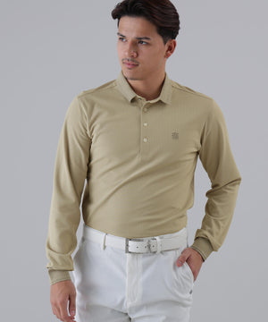 軽量で独特のふくらみ感がある高機能ポリエステルストレッチ糸のSPXを採用した、SPX裏使いジャガード長袖ポロシャツ。