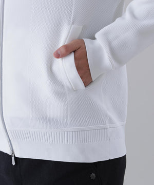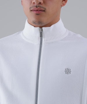 フルジップの羽織やすさでラウンド中の着脱がしやすく、1日の中で変化し続けるゴルフ場の気温に素早く対応できるニットブルゾンです。
