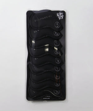 モノトーンカラーに映えるロゴと、5.6.7.8.9.P.A.S.X の計9点の番手マークをつけてよりスムーズな取り出しがしやすいスタイリッシュなデザイン。
