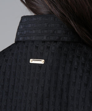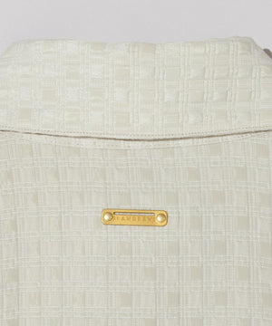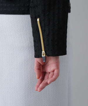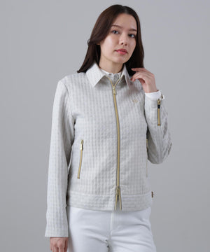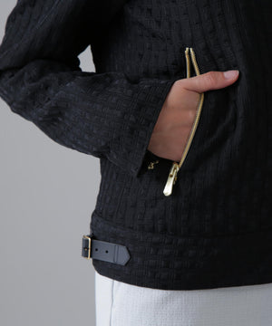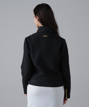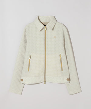立体的に柄を浮かせた凸凹のある表面感が特徴の、二重織のふくれジャガードのブルゾンです。