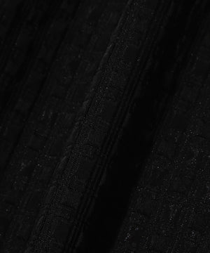 タテに光沢のあるブライト糸とヨコにウーリー糸を使い、光沢のスクエア部分とマットな部分を交互に並ぶように柄を組んでいます。