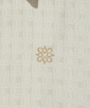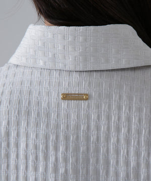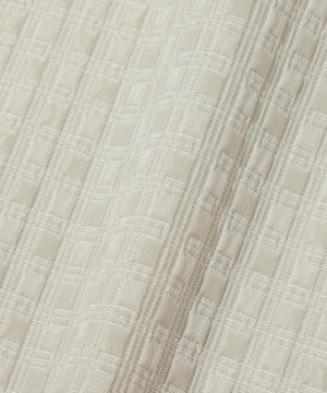 伸縮性の違う2タイプの糸を使用して立体的なフクレの表面感を出した、国内桐生産地の高品質なジャガード素材を使用。
