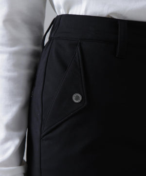 ウエストの一部にゴムを入れて楽なはき心地の実現と温かさをキープしながら、肉厚感を抑えた、着膨れしないスッキリとしたシルエットで仕立てています。