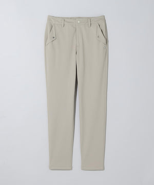 ポリエステルスムースに薄手の防風膜を貼り、薄手の起毛素材をボンディング加工で貼り合わせたストレッチパンツです。