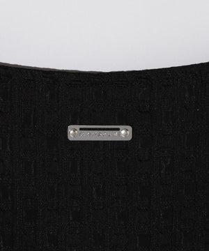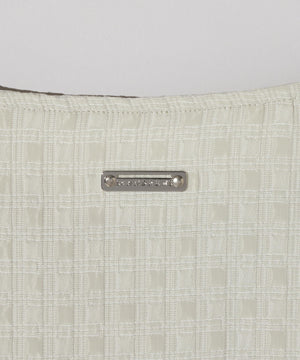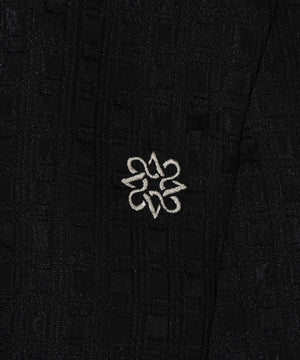 タテに光沢のあるブライト糸とヨコにウーリー糸を使い、光沢のスクエア部分とマットな部分を交互に並ぶように柄を組んでいます。