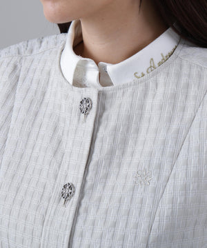 華やかさのあるメタリックのフロントボタンやケルト刺繍がコーディネートのポイントになる、フクレジャガードベスト。