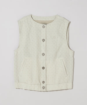 立体的に柄を浮かせた凸凹のある表面感が特徴の、二重織のふくれジャガードベストです。