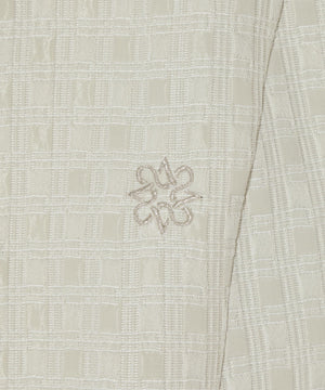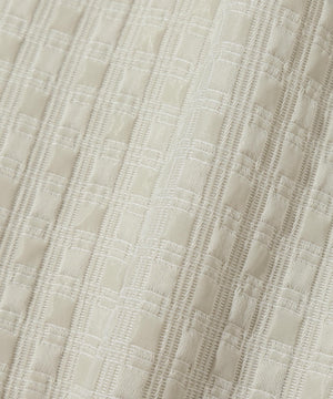 伸縮性の違う2タイプの糸を使用して立体的なフクレの表面感を出した、国内桐生産地の高品質なジャガード素材を使用。