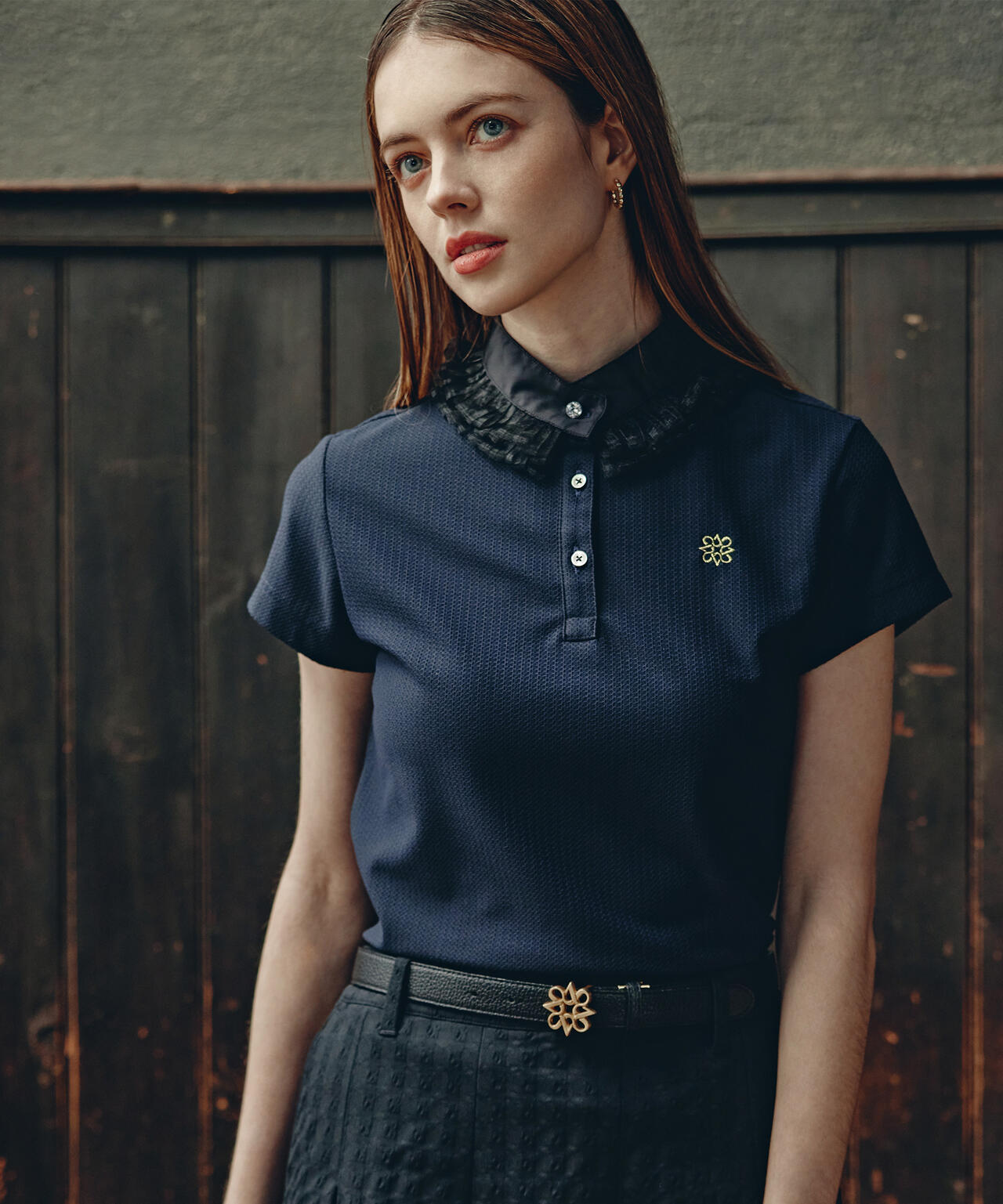 胸元のグラフィックがアクセントになって、ゴルフ場で、練習場で、幅広いコーディネートに活用できます。