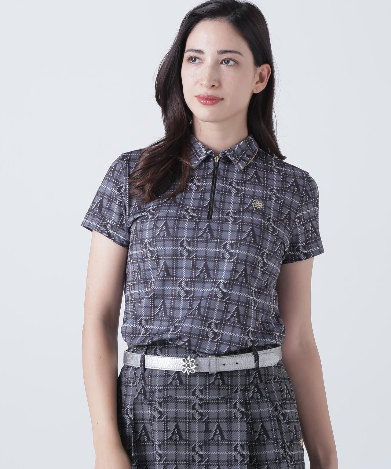 トリコットメッシュロゴチェックプリント半袖シャツ (WOMENS)
