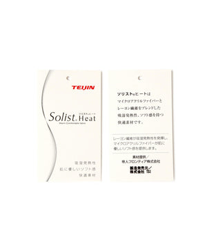 異形断面のアクリルとレーヨ ンを均一に混ぜ込み、繊維内に多くの 空気層を持たせる事で嵩高性と吸湿発熱性を与えた保温性のあるソリストヒー トを使用しています。