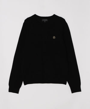 9Gアイレットリブ花柄クルーネックニットプルオーバー (WOMENS)