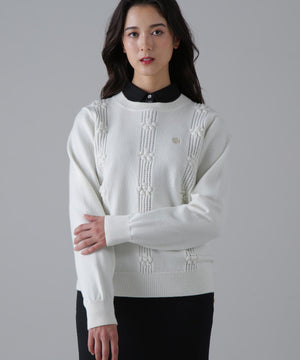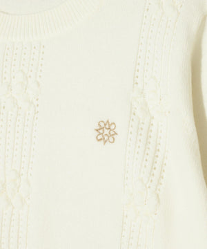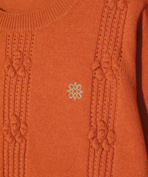 女性ならではの可愛らしさプラスした、9Gアイレット花柄クルーネックニットプルオーバー。