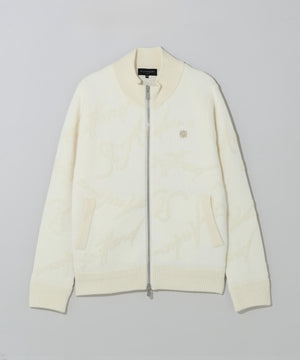 異素材の糸でランダムロゴをジャガード 表現した、裏地付きニットブルゾンです。