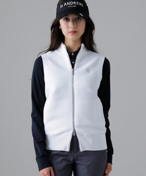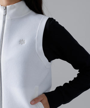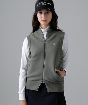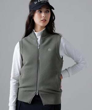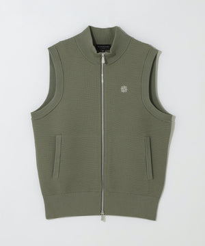 ダブルジップのフロントファスナーの開閉具合でシルエットのアレンジが楽しめる、14Gフルジップアップニットベスト。