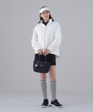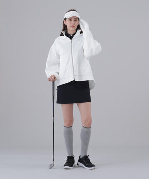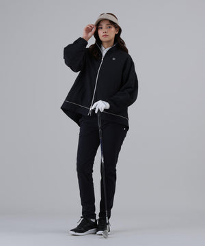 ストレッチナイロンタフタを使ったトレンド感のある[品番 : 043-6131252]スキニーパンツと、インナーには[品番 : 043-6166202]レース編み風ジャガードのモックネックを合わせた、大人のゴルフスタイルを格上げできるシックで洗練されたコーディネートがおすすめです。