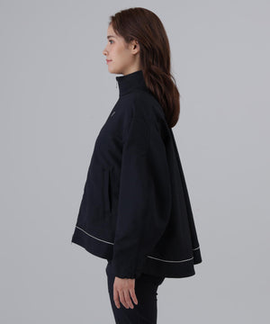 羽織るだけで華やかを与えて旬のスタイルが完成する、ボリューム感とドレープ感が美しく映えるブルゾンです。