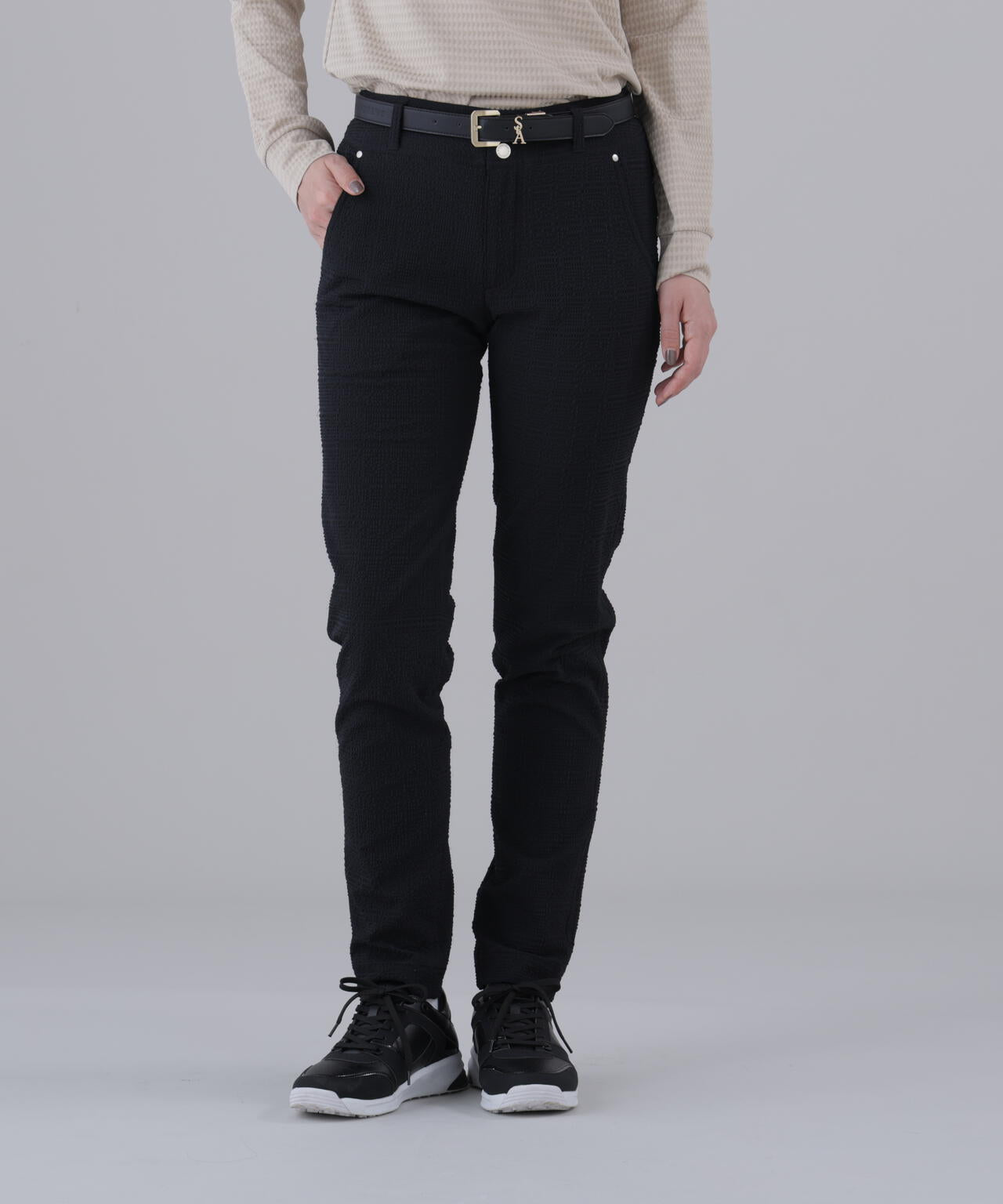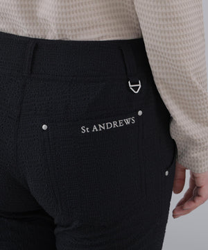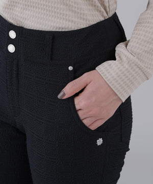 脚のラインが綺麗に見えるすっきりしたシルエットながら、ストレッチ性に優れているのでスイングや屈伸が楽に行えます。