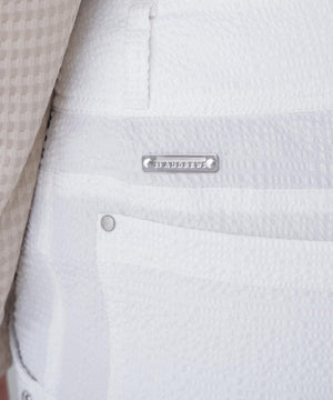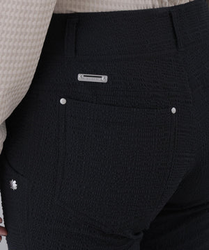 サッカー生地表面の凹凸にさらにランダムな凹凸で豊かな表情をつけて立体感のあるおしゃれな雰囲気を演出できる、特徴的な凹凸によるデザイン性が魅力的なパンツです。