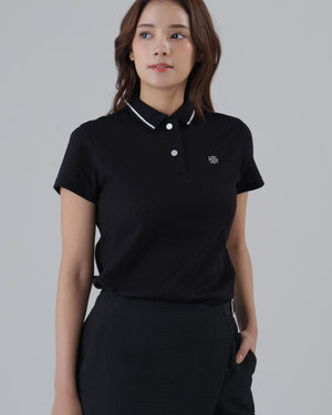 ヘリンボーンジャガード半袖ポロシャツ (WOMENS)