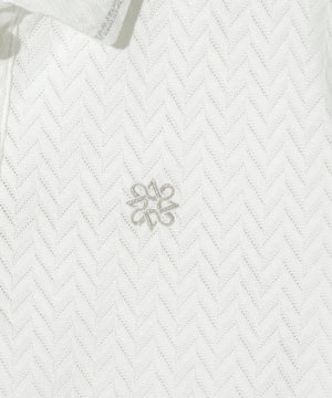 V字の織り模様が奥行きと表情を生み出して、コーディネートに高級感や洗練された印象を与えてくれるポロシャツです。