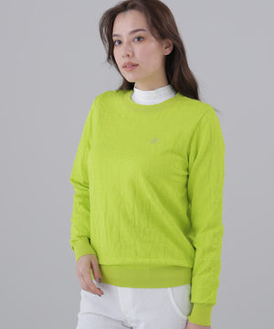 柄が浮き上がって見える格子柄のジャガード織の凸凹で、上質感溢れる立体的で繊細な印象に仕上げたクルーネックニットアイテムです。