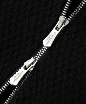 ダブルジップのフロントファスナーの開閉具合で、着こなしのアレンジが楽しめます。