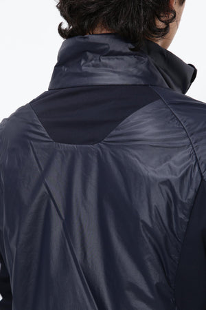 異素材の切替しでデザイン性と快適性を両立した、ナイロンストレッチタフタシレー×メリルハイテンションコンパクト裏起毛ジャケット。適度なハリコシとツヤ感を施した撥水効果を発揮する高密度なナイロンストレッチと、起毛加工ならではのソフトで温かみのある肌触りが特徴のメリルハイテンション裏起毛生地を使用しています。身体の動きを快適にしてくれるストレッチ性とキックバック性に加えて、空気をたくさん含むことで軽量かつ高い保温性の実現と、吸水速乾性、遮熱性を兼ね備えた中綿と裏地を一体化した快適機能素材のoctaを採用しているのもポイントです。極寒の環境下の中でも高いパフォーマンスを発揮できるように快適性を追求して立体構造を作り出した、拘りの切替しと素材の組み合わせで冬ゴルフに最適なプレイアウターに仕上がっています。同シリーズでご用意のあるロングパンツと、セットアップでキメるのもオススメです。
