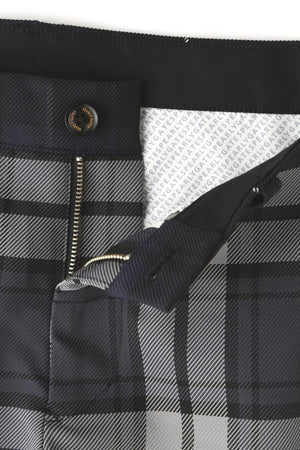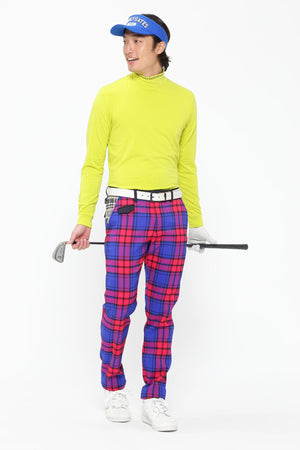 カラーやピッチ違いのパターンワークの組み合わせで新鮮に総柄を表現した、マルチチェック柄ポリエステルストレッチ5ポケットパンツ。ドラッタッチな風合いとストレッチ性を兼ね備えた、ゴルフはもちろん、アウトドアやデイリーでも大活躍する履き心地の良いパンツです。ポケット袋布には、抗菌、消臭、抗ウィルス、汚れの分解など、高機能性を兼ね備えた生地を使用しているのもポイント。オシャレ心をかき立ててくれる鮮度の高いマルチチェックの総柄の中で、フラップ仕様のウォッチポケットやバックポケットがさりげないアクセントになっています。同シリーズのゴルフアクセやハットなどとフルコーディネートでキメて、インパクトのある着こなしを楽しむのもオススメです。