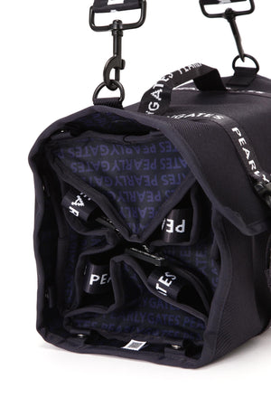 PGロゴテープがアクセントになった、ショルダーストラップ付きのECO素材収納バッグ。取り外し可能のアジャスターショルダーストラップや手持ちできるハンドルが付いているので、シーンやコーデに合わせて色々な持ち方や使い方がでるユニークなバッグです。収納スペースはそれぞれセパレートになっているので、使い勝手の合わせて小分けできて便利な仕様です。ゴルフをはじめ、アウトドア、旅行、ジム、デイリーなどの幅広いシーンで活用できます。