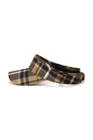 この秋注目カラーのベージュとブラウンの2カラー展開で登場した、チェック柄バイザー。人によってはどこか懐かしさを感じるチェック柄で、秋らしいオシャレ感が演出されたアイテムです。バックパネルにはアジャスターがついているので、好きなフィット感を簡単に調節できます。また、内側には清潔で爽やかな被り心地を保つ、取り外し可能の吸汗ベルトがついた快適な作りです。お揃いでコーディネートが楽しめる、同シリーズのソックスやグローブなどのゴルフアクセサリー類のアイテムを多数取り揃えています。ユニセックスなので、自分用としてもプレゼントとしてもオススメの逸品です。