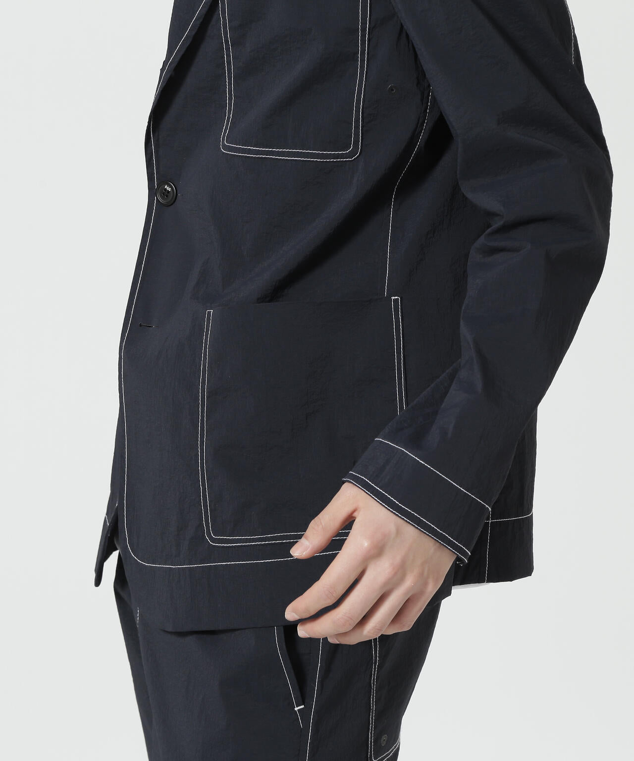 ステッチワークとパッチポケットがアクセントになった、直営店舗&公式オンライン限定 Nyタスラン調ストレッチワッシャーテーラードジャケット。身体のラインをキレイに見せつつゆったり着られる、ストンと落ちる絶妙なシルエットが快適な一着です。春夏コーデにぴったりなコットンライクにふっくらと仕上げた、タスラン調の糸を使用しています。ナイロン特有のドライ感としなやかな風合いを併せ持ち、ストレッチ性、キックバック性、速乾性、耐久性、撥水性、防風性など、軽やかな着心地を体感できる数々の高機能を兼ね備えています。豊かな表情と程よくボリューム感を出すワッシャー加工により、スタイリングにさりげなく抜け感を演出します。ゴルフの行き帰りはもちろん、クラブハウス、デイリーユースに、様々なさらっと羽織やすい万能な1着となっています。同シリーズのパンツと合わせて、セットアップコーデを楽しむのもおすすめです。