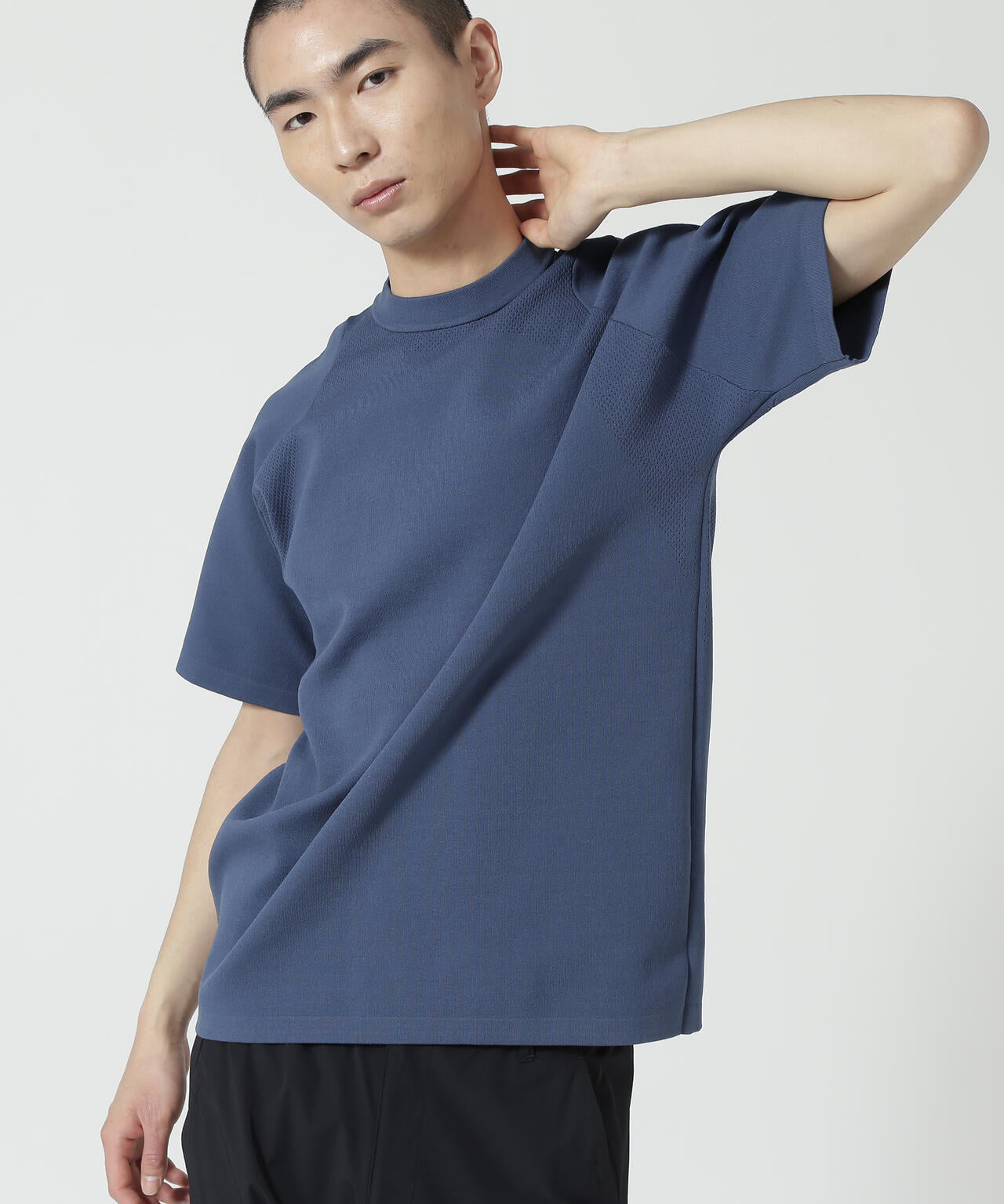 リラックスフィットの緩めのサイズ感を活かした今っぽいスタイリングが叶う、直営店舗&公式オンライン限定 Pe半袖モックネックニットプルオーバー。