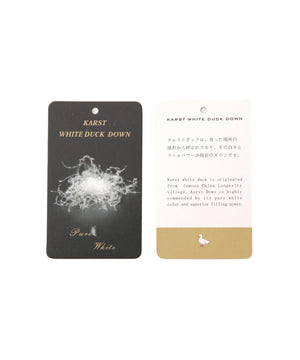 伝統的な飼育方法で育てられた丈夫で、嵩高性や保温性に優れた高品質なホワイトダックダウンのKARST WHITE DUCK DOWNをメインにした中綿を採用。