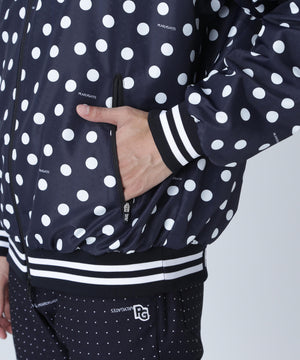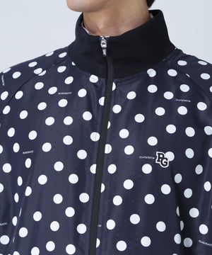 機能素材を使用して立体構造のスッキリしたシルエットで仕立てた、ランダムドット柄タフレックス×サーモトロンフルジップブルゾン。