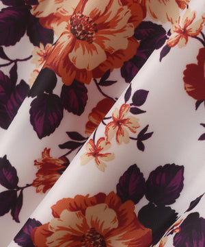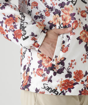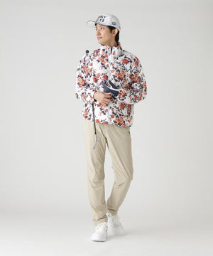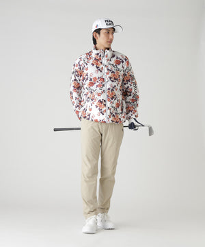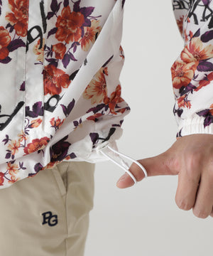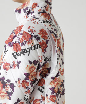 軽い着心地で柔らかさと暖かさを感じる、繊細花柄Peミニリップ中綿ジップアップブルゾン。