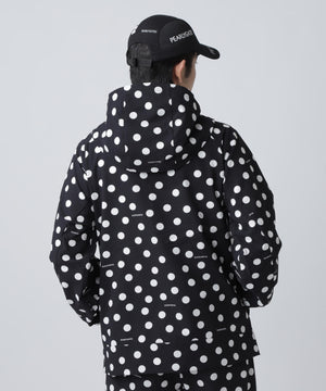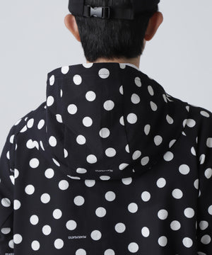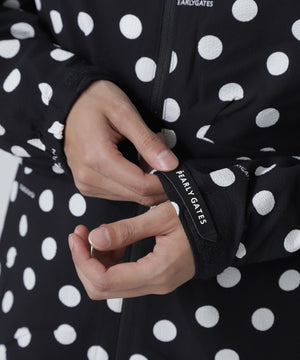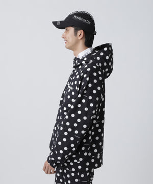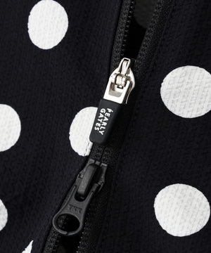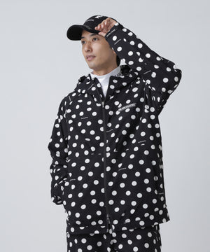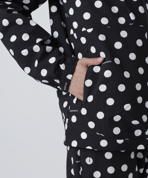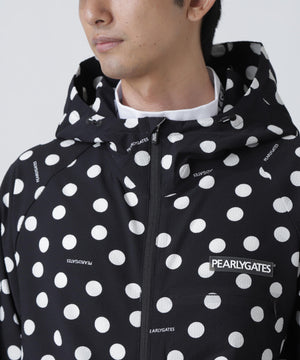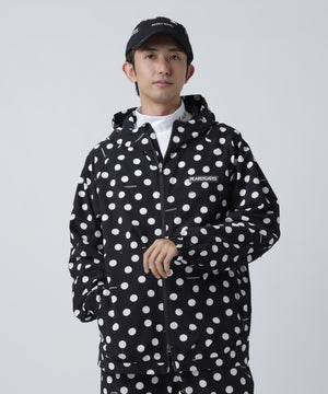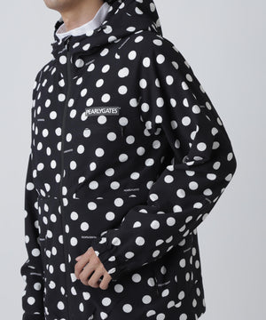 ドット柄とロゴを組み合わせたオリジナルの柄で総柄を表現した、ランダムドット柄 Peストレッチサッカーフルジップフーディ。