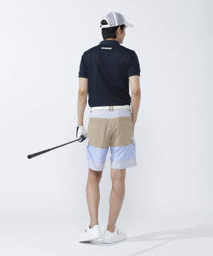 天候の変わりやすいゴルフシーンに最適な、多少の雨などの水分を弾きやすいナイロンストレッチ素材を使用。