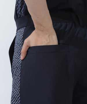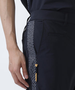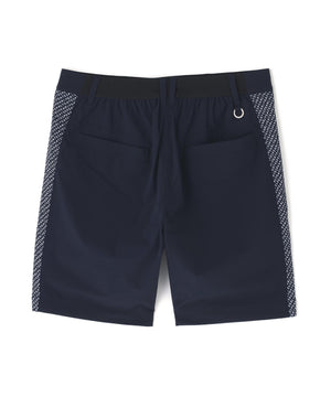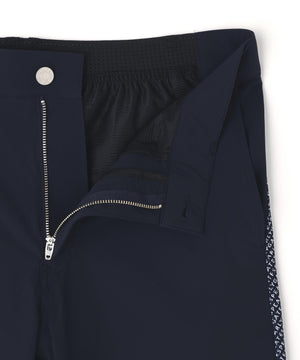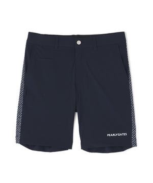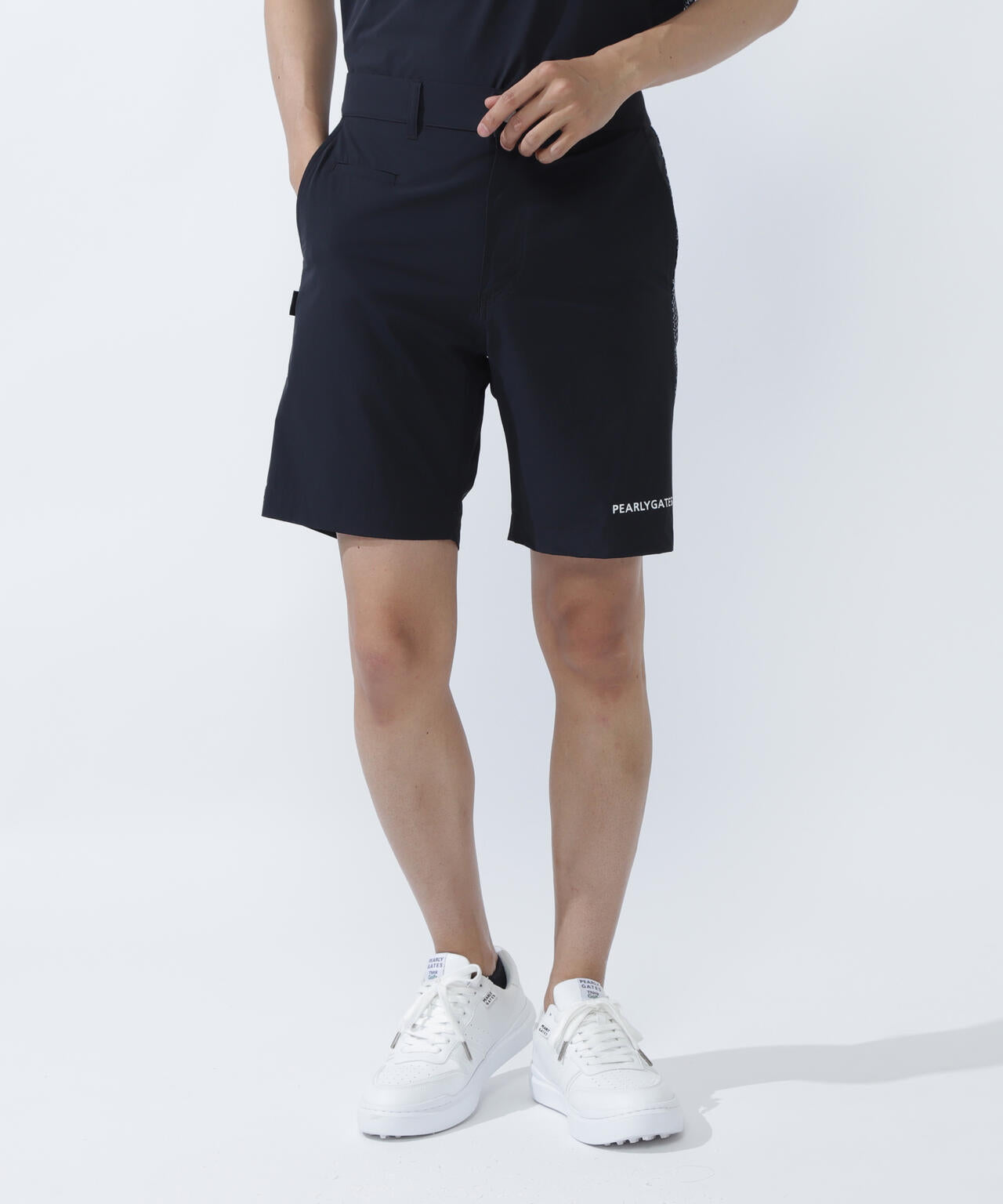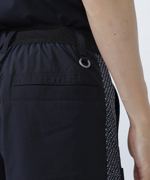 バイヤスロゴ柄のサイドの切替しがコーディネートのポイントになる、ナイロンアクティブストレッチショートパンツ。